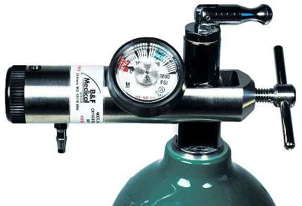 Industry leader B&F Medical created a brass uni-body oxygen regulator that offers good performance and that is economically priced. Constant flow settings include 0, 1, 2, 4, 6, 8, 10, 12, 15, 20, and 25 LPM. The uni-body oxygen regulator comes complete with contents gauge and is available with or without high flow DISS ports.