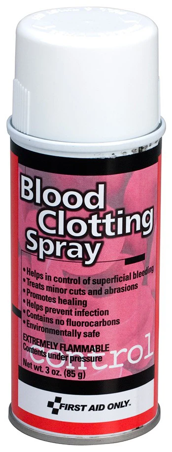 First Aid Only Blood Clotting Spray helps control superficial bleeding by forming an immediate porous, skin-like film over minor cuts and abrasions. Promotes healing and helps prevent infection. Contains no fluorocarbons, so it’s environmentally safe.