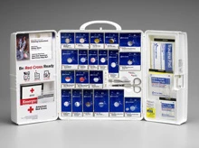 This 254-piece food service kit is ideal for restaurants, delis, or any food service establishment. The swing-out door and easy-to-carry handle add extra convenience. This wall-mountable cabinet design by the American Red Cross eliminates disorganized and missing supplies. Clearly labeled compartments create a cabinet that is easy to use and restock. With the expansion pocket, you can customize your cabinet to meet your specific needs. (Note: This First Aid Cabinet is made of plastic)