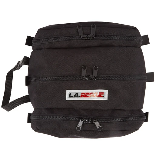 The L.A. RESCUE Toiletry Bag is water resistant and hand washable, making it suitable for travel in all weather scenarios. Three double zippered compartments that have nylon webbing tabs for easy opening. Nylon webbing handle with nylon buckle to hang on hook, hand carry, or fasten around a closet pole. All inside seams are triple stitched and taped for lifetime use.