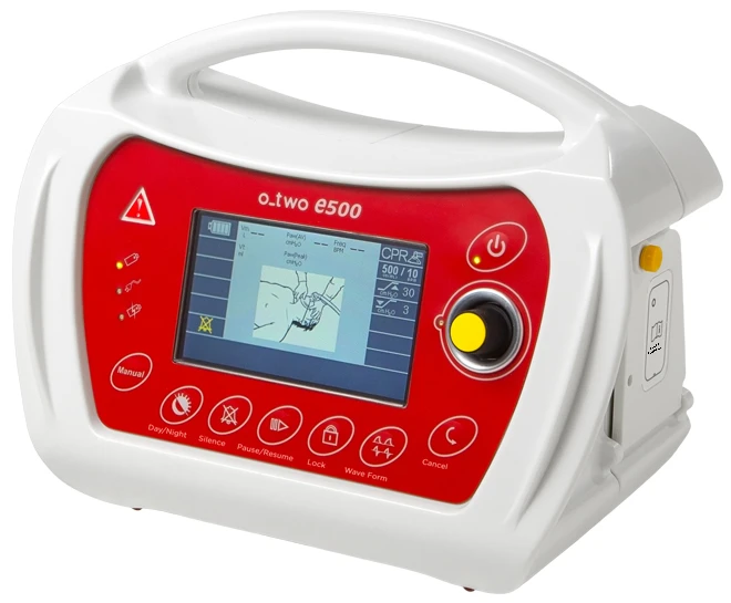 The O-Two e500 Transport Ventilator ushers in a “new era” in controlled ventilation for resuscitation and patient transport! These electronically controlled, pneumatically powered ventilators provide a range of ventilation solutions for resuscitation and transport in the prehospital and in-hospital healthcare professionals.