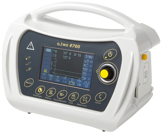 The O-Two e700 Transport Ventilator ushers in a ”new era” in controlled ventilation for resuscitation and patient transport! These electronically controlled, pneumatically powered ventilators provide a range of ventilation solutions for all types of patient requirements and all levels of pre-hospital and in-hospital healthcare professionals.