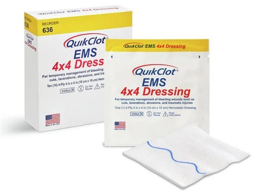 Z-Medica QuikClot® EMS Dressing with X-ray Strip, 4in x 4in, 10/box |