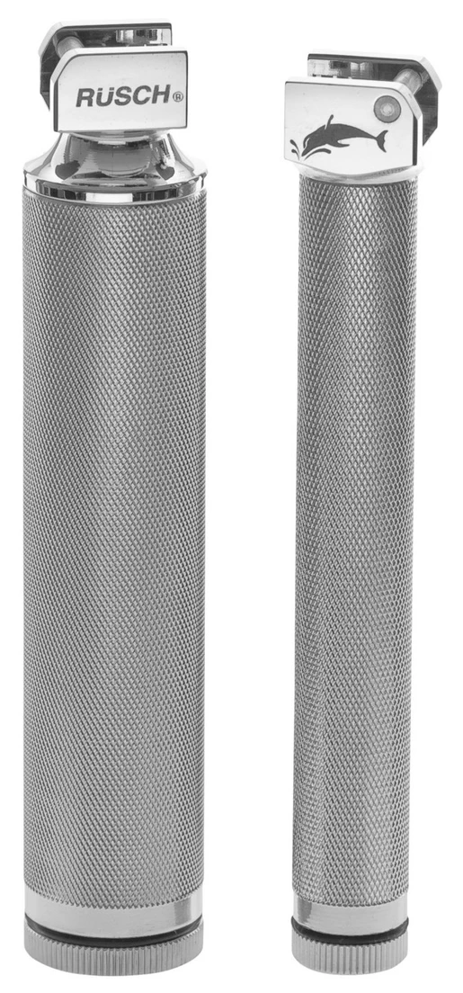 The Rusch Dolphin Waterproof Laryngoscope Handles feature o-rings that create a watertight/waterproof seal that keeps the moisture out allowing you to keep the batteries in when you soak the Dolphin for cleaning. The Dolphin laryngoscope handle is a high quality standard/conventional chrome-plated brass handle that will fit all standard/conventional laryngoscope blades manufactured to the ISO standard 7376. Latex-free.