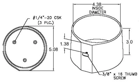 These single oxygen cylinder cups mount on the floor with three screws. They are constructed of aluminum and have a thumb screw on the side. The inside of the O2 cylinder cups are bead-blasted and the outside are polished.